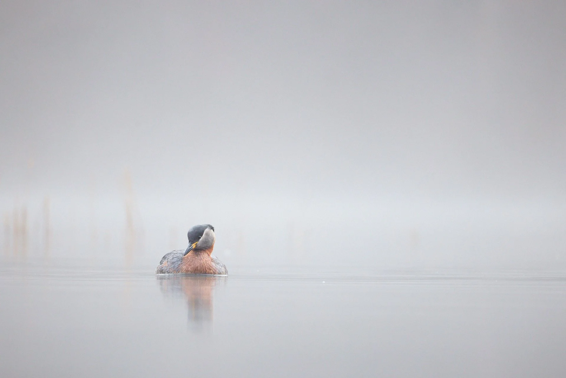 So einen besonderen Moment gab es nun seit längerem mal wieder. Die Freude über die Lieblingsbedingungen war vor allem deshalb noch einmal größer, da sich eine meiner absoluten Lieblingsvogelarten in ihnen wiederfand: Rothalstaucher. Diese wunderschönen Vögel in Kombination mit Nebelschwaden und ein paar Schilfhalmen, die das spiegelglatte Wasser wie Pinselstriche durchbrachen... Mehr konnte ich mir in dem Moment nicht wünschen.